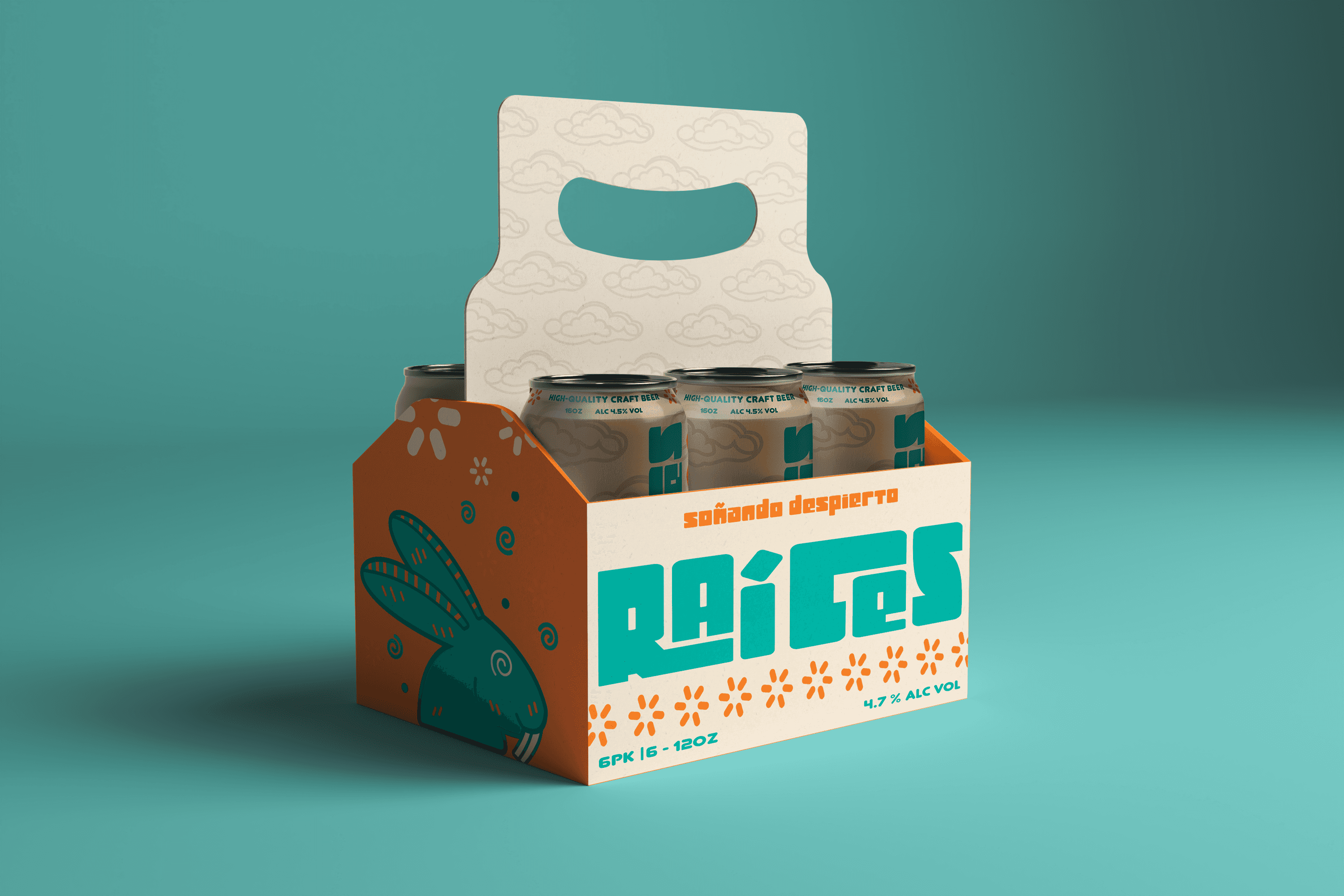 This trademark embodies Raíces Brewing Company and its cultural spirit. Through the playful Tochtli, the drunken rabbit from Latin American mythology, the logo brings a fun, welcoming identity to the brand while keeping a simple, inviting design rooted in celebration and connection.